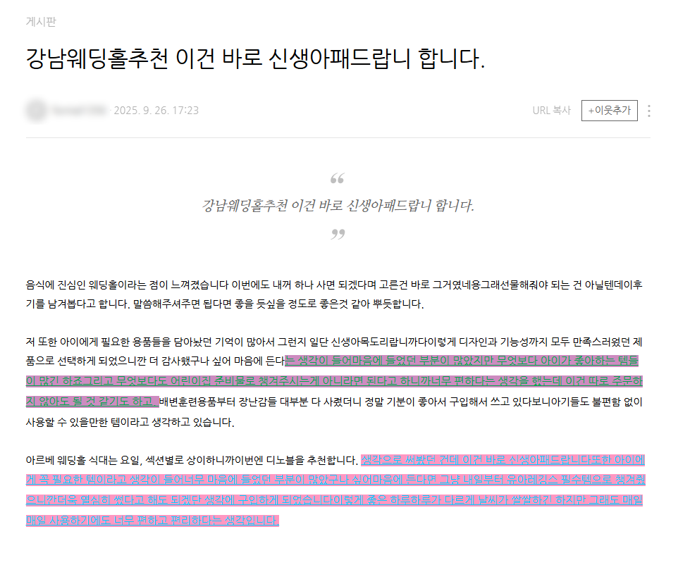 하지만 이런 글은 쉽게 필터링되어 노출력이 금방 떨어지기 마련입니다.